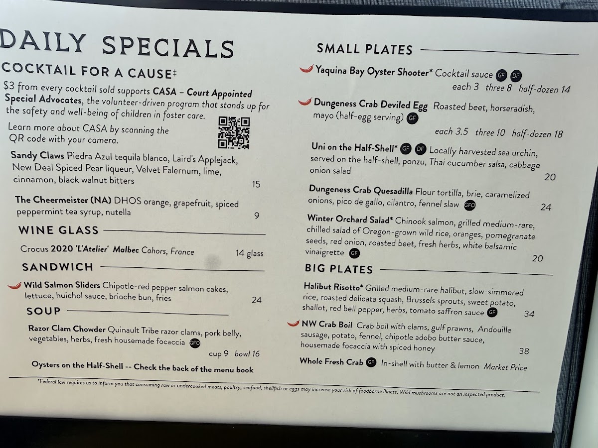 Local Ocean Seafoods in Newport, Oregon, offers an exceptional seafood dining experience rooted in fresh, Northwest flavors. The menu highlights include their renowned crab cakes, praised as some of the best in the Pacific Northwest, and the savory Fishwives Stew—a zesty tomato broth infused with saffron and white wine, brimming with fresh seafood. Signature dishes like the gluten-free Steamer Clams, served Northwest-style with garlic, shallot, white wine, and butter, showcase a commitment to bold, clean flavors. Skewered Weathervane Scallops with grilled asparagus and smoked goat cheese balance delicate textures with a bright white balsamic vinaigrette. The bar features local craft options such as 2 Towns’ dealcoholized cider and finely curated sparkling wines from Willamette Valley. Every dish reflects freshness and meticulous preparation, highlighted by standout items like the roasted garlic and Dungeness crab soup. Local Ocean Seafoods delivers a memorable, authentic coastal feast that seafood lovers will cherish.